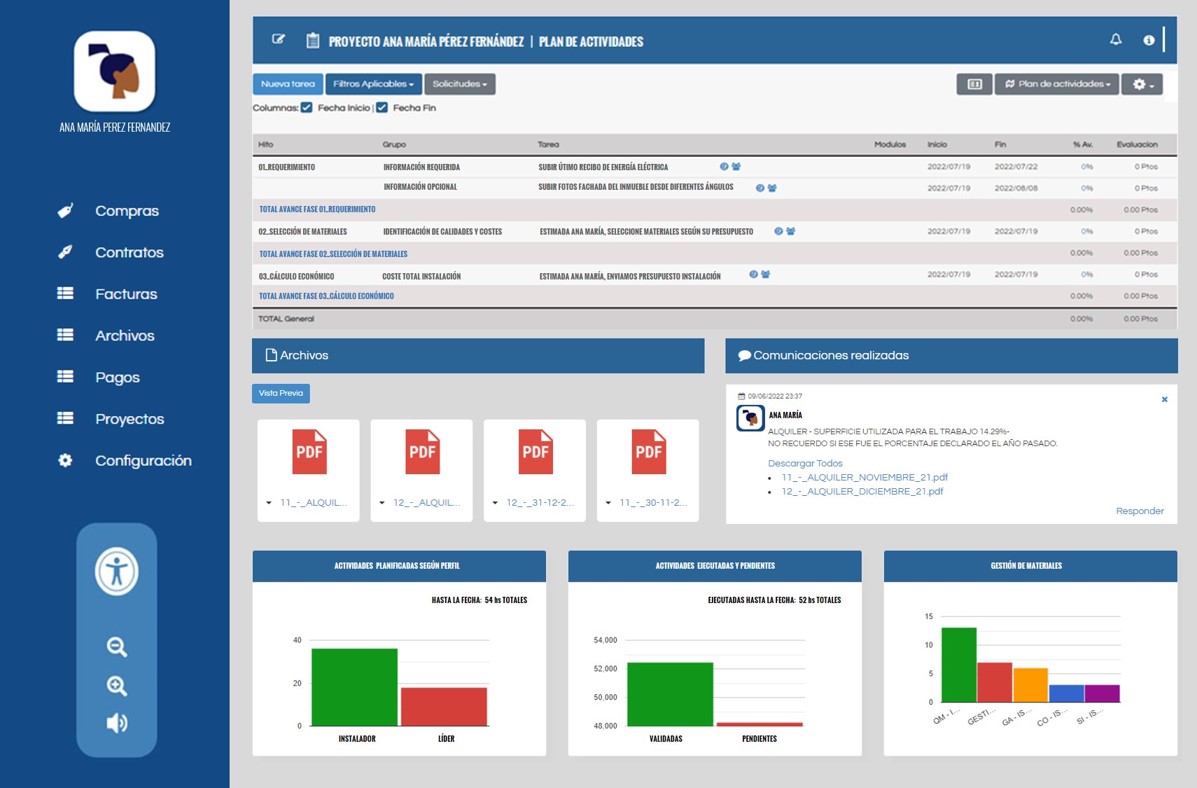 Tendrás a disposición un espacio de trabajo completamente aislado, privado, securizado y dedicado; desde donde poder hacer el seguimiento del Proyecto de Instalación extremo-extremo, durante todo su ciclo de vida